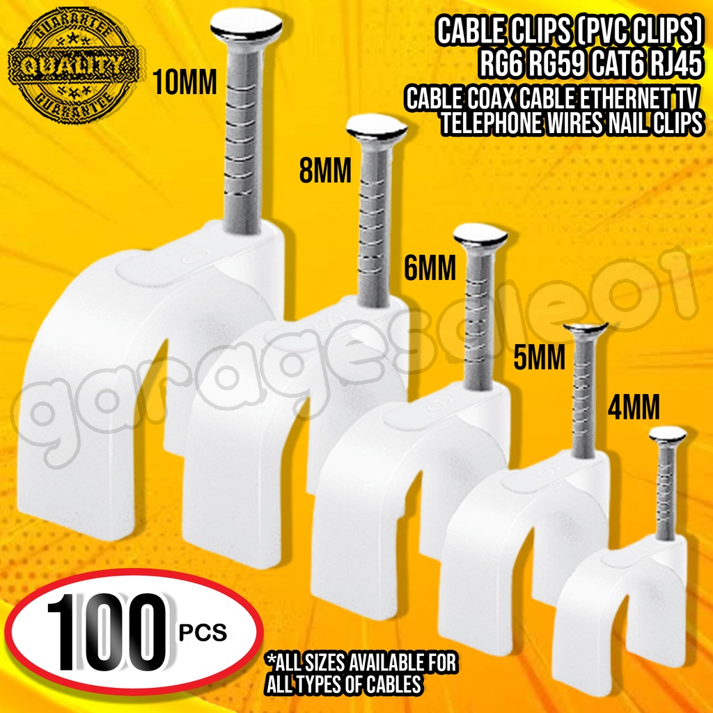 Cable Clips (PVC Clips) RG6 RG59 CAT6 RJ45 Cable Coax Cable TV